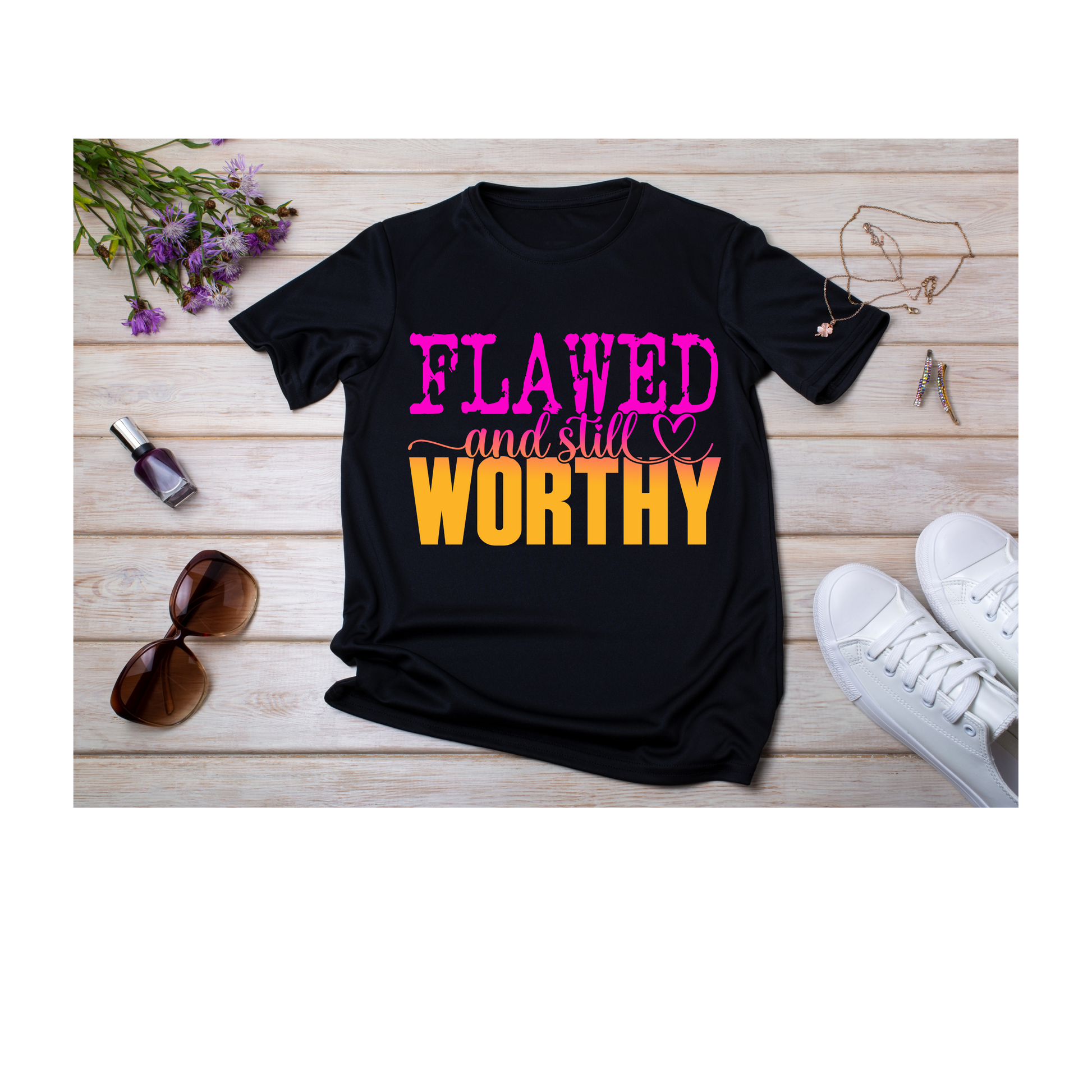 Introducing the "Flawed" Tee Shirt - a quality unisex t-shirt designed to make you feel confident, comfortable, and blessed. Made with premium materials and a classic design, this tee shirt is perfect for everyday wear or special occasions. Show off your style with the "Flawed" Tee Shirt.